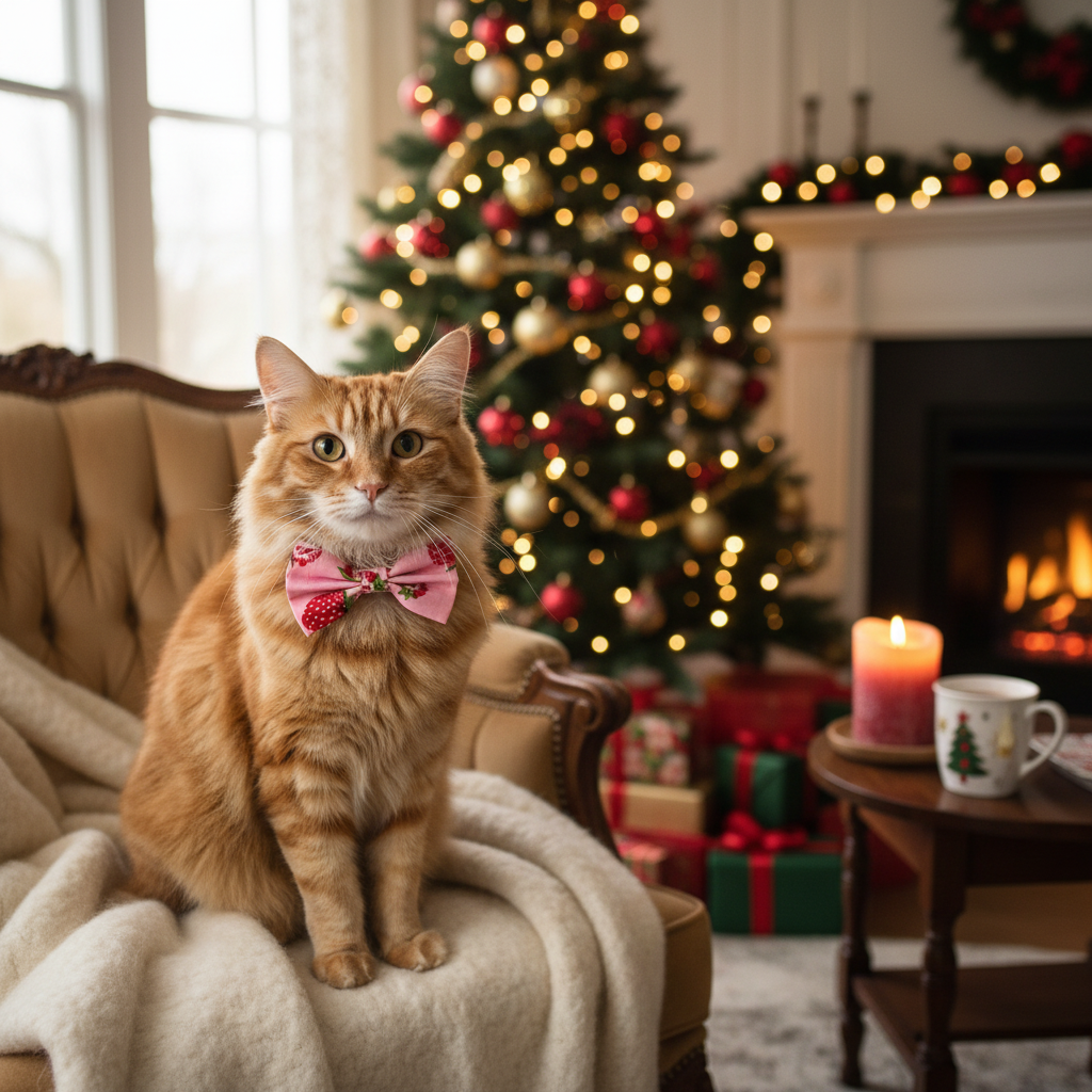 Charming cat photo with a Christmas theme. AI-generated holiday photography perfect for pet lovers and festive marketing campaigns.