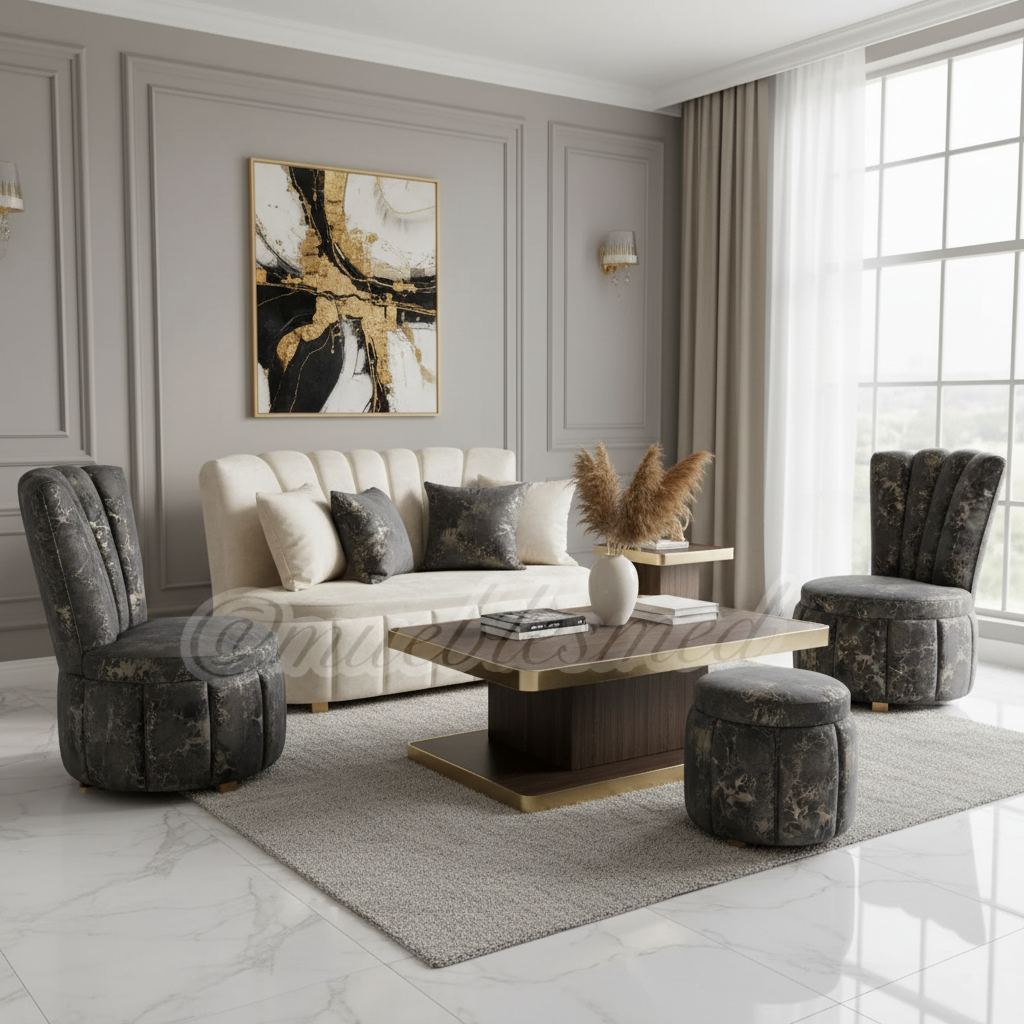 Luxury interior design with stylish furniture and decor. AI-generated living room photography, perfect for interior design websites and catalogs.