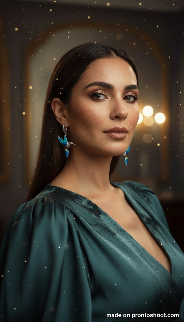 Stunning portrait of a woman in an elegant dress. AI-generated fashion photography perfect for luxury branding and editorial content. Available for licensing.