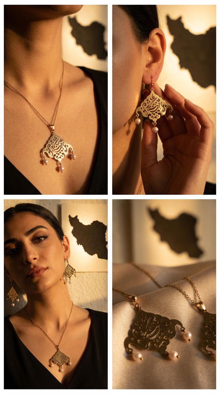 Elegant gold Persian earrings showcased in professional product photography. AI-generated image perfect for jewelry ecommerce and online marketing.