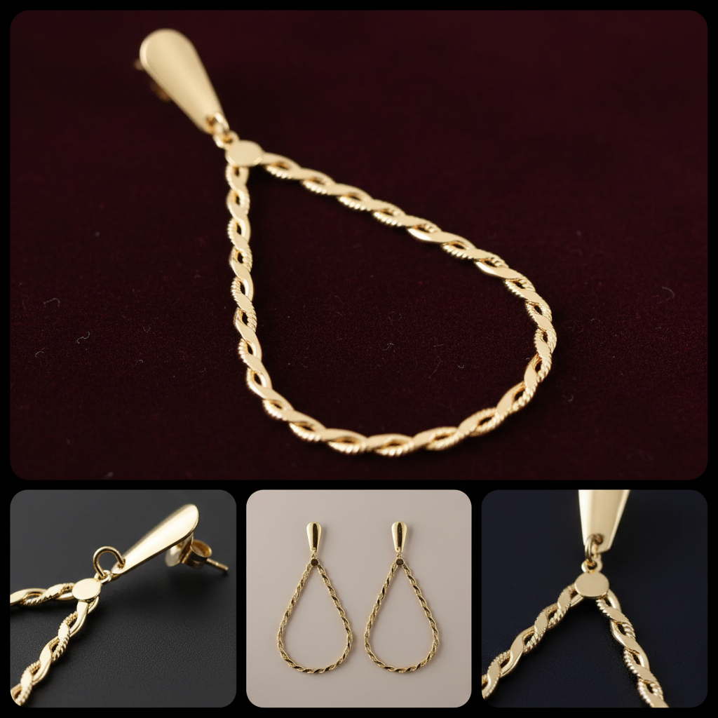 High-quality gold teardrop earrings product photography. AI-generated image perfect for showcasing jewelry online and in print marketing materials.