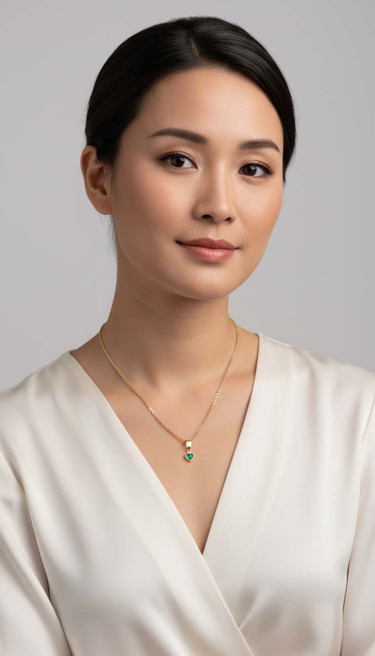 Elegant gold necklace featuring a charming heart-shaped pendant, perfect for daily wear or special occasions. AI-generated photography.