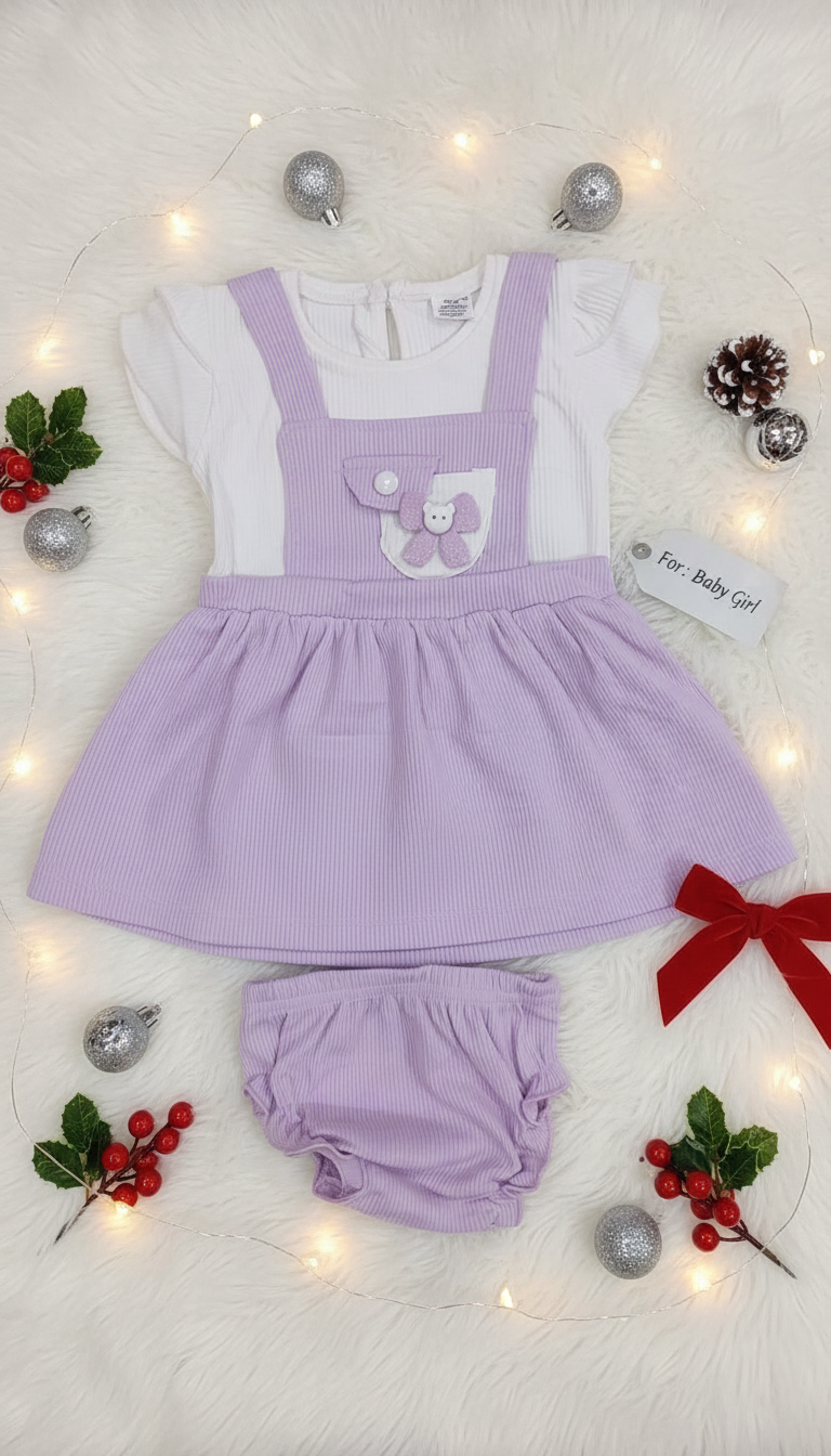 Adorable baby girl dress flat lay product photo. AI-generated image perfect for e-commerce, catalogs and online fashion marketing.