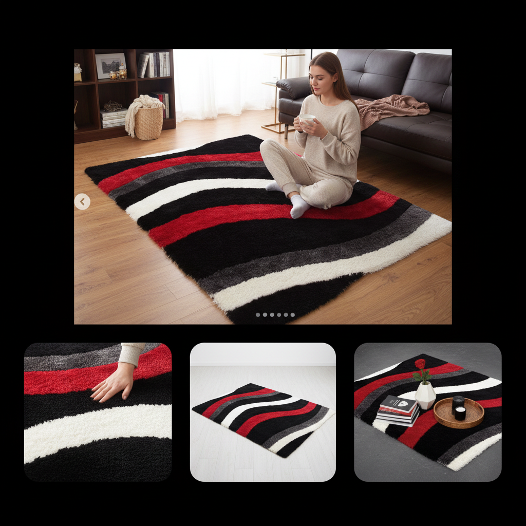 Eye-catching shag rug photography showcasing its modern design and plush texture. AI-generated product images perfect for home decor e-commerce.